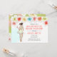 La invitación de fin de semana en la playa para despedida de soltera presenta un tema tropical con flores de hibisco y la novia morena disfrutando de un cóctel. Disponible con chica rubia, morena, pelirroja y con piel oscura o clara.