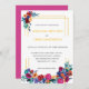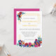 Una colección de bodas con tema mexicano floral en acuarela colorida. Este diseño audaz y hermoso tiene una abundancia de flores coloridas y tipografía moderna. La ilustración botánica incluye peonía, rosa, fucsia, lirio y follaje en tonos de rosa, púrpura, naranja, amarillo, verde y azul.