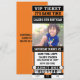 Invitación de FOTO de BOLETO de béisbol Naranja y Negro. Agregue texto al frente y atrás si lo desea. Elimine un área de texto para dejarla en blanco. Agregue su propia foto para una invitación única y completa.