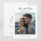Celebra tu historia de amor con esta invitación de foto para guardar la fecha moderna y elegante, diseñada para parejas que aprecian la belleza atemporal y la sofisticación minimalista. Con un diseño limpio y tipografía refinada, y un enfoque en la foto completa, este diseño resalta tu momento más preciado de una manera elegante y contemporánea.