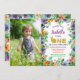 Hermosa floral acuarela púrpura y dorada. Inserte su propia foto. Perfecto para la fiesta de cumpleaños de los niños con tema de Pascua.