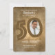 Celebra con estilo con esta invitación de fondo grunge en dorados y beige con un atractivo número 50. El centro del cero está cortado formando una ventana para tu foto favorita. (<a href='https://www.freepik.com/free-photo/grunge-paper-background_1338078.htm'>Diseñado por Freepik</a>). <br/><br/>La tarjeta es fácil de personalizar con tu texto, fuente y color de fuente.<br/><br/>¿No es exactamente lo que estás buscando? Todos nuestros productos pueden ser diseñados a medida para satisfacer tus necesidades sin cargo adicional.<br/><br/>Simplemente contáctanos en askcottonlamb@gmail.com.<br/><br/>Productos coordinados disponibles: ¡Solo pregúntanos!