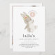 Un dulce conejo con una corona floral, sosteniendo un globo rosa, con tu propia foto en el reverso. Puedes cambiar el número 1 en el globo por cualquier número, y editar todo el otro texto, o eliminar el número si lo prefieres. También puedes cambiar el color del globo en este diseño.
