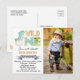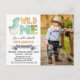 Tarjeta postal de invitación de foto de cumpleaños número uno de dinosaurio salvaje. Para personalizar, escriba el texto en lugar de la muestra en el campo de edición anterior a la derecha. También puede cambiar la tipografía y el color y tamaño de la fuente si lo desea.