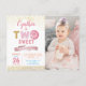 Tarjeta postal de invitación de foto de donut dulce para el segundo cumpleaños de niña