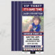 Invitación de FOTO de Entrada de Béisbol Azul y Granate. Agregue texto al frente y atrás si lo desea. Elimine un área de texto para dejarla en blanco. Agregue su propia foto para una invitación única completa.