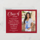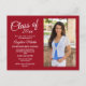 Moderna y moda, simple invitación a la fiesta de fotos de graduación roja para chicas, diseñada con un elegante tipo de letra de guión. La personalización le permite personalizar para la clase 2022 o cualquier año que elija. Estas invitaciones para fiestas son perfectas para graduación de secundaria o universitaria. Póngase en contacto con nosotros para obtener ayuda sobre la personalización o para solicitar productos de correspondencia o coordinación.