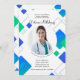 Una invitación para una fiesta de graduación con una ventana de foto redonda y un diseño abstracto azul y verde de moda sobre un fondo blanco. (Foto creada por nensuria - www.freepik.com). (Vector creado por freepik - www.freepik.com). La tarjeta es fácil de personalizar con su texto, fuente, color de fuente y opciones de forma de papel. ¿No es exactamente lo que está buscando? Todos nuestros productos se pueden diseñar a medida para satisfacer sus necesidades sin cargo adicional. Simplemente contáctenos en askcottonlamb@gmail.com. Productos coordinados disponibles: ¡Solo pregúntenos!