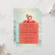 Solo una recepción de boda romántica, invitación posterior o después de la boda con dos flamencos en un fondo de agua brillante azul verdoso pálido con coral festivo.