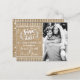 Tarjeta Postal de Invitación de Foto de Save the Date Rústica de Arpillera. Personalice con cualquier texto. Artículos coincidentes están disponibles.