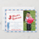 Una invitación clásica de upsherin con cuadros azules y rojos, con un patrón de cuadros azules en la parte posterior. ¡Personaliza con tu propia foto!