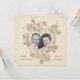 Una elegante invitación con corazones de oro y florituras en un fondo de textura bronceada. La parte trasera tiene un acento de corazón de oro y florituras en el mismo fondo. Esta invitación se muestra como un evento de aniversario número 50, pero se puede personalizar para cualquier ocasión y viene completa con sobres blancos y elección de papel. La invitación se imprime plana y no contiene adornos en relieve.