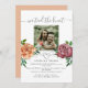 Celebre su intercambio de votos o post-elopamiento con esta romántica invitación de foto floral 'Nos Anudamos'. Con peonías de acuarela rosa y borgoña, caligrafía elegante y un nudo de corazón simbólico, este diseño combina perfectamente encanto y estilo moderno. La foto personalizada lo hace aún más personal, ideal para anunciar su matrimonio e invitar a seres queridos a una fiesta de bodas, recepción informal o cena de celebración.