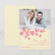 Tarjeta moderna y elegante de "save the date" con foto y tema asiático. Presenta la silueta de ramas de flores de cerezo para un aspecto fresco y contemporáneo. Agrega la foto de la pareja en la parte superior para un toque personal. Ideal para una pareja que quiere celebrar una boda con un tema japonés, asiático o floral. Diseño delicado y sofisticado ideal para una novia chic y global. Perfecta para una boda de destino que se celebrará en un país asiático. Úsala también para una boda que se celebrará en un jardín japonés. Agrega tus propias palabras.