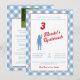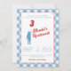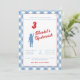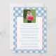 Una clásica invitación de upsherin de gingham azul y rojo, con una foto y un poema de upsherin editable en la parte posterior.