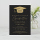 Esta elegante invitación de graduación en negro y dorado puede ser personalizada con sus detalles de graduación y una foto al revés. Diseñado por Thisisnotme©