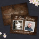 Esta elegante invitación de fotos conmemorativa presenta un fondo rústico de madera oscura, dos fotos cuadradas y una tipografía simple y elegante. En la parte trasera, el fondo de madera oscura se repite con espacio para escribir un mensaje personal. Puede seguir personalizar este diseño haciendo clic en "editar con herramienta de diseño".