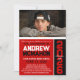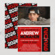 Invitaciones de foto de graduación moderna vertical negra y roja 1 foto - Clase repetitiva año atrás