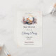 Adorable invitación a la ducha de bebé con un zorro a la acuarela acurrucada bajo una luna de luna dorada, rodeado de suaves flores en melocotón, lavanda y crema. Ideal para celebraciones con temática de bosques y duchas de bebés de inspiración natural.