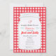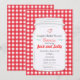 Invitación de frasco de Mason rústico de gingham rojo. Elija personalizarlo para agregar su información.