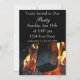 La invitación de fuego de llama de fiesta tiene una llama naranja que quema bloques de madera en la parte inferior hasta el medio y un fondo negro con un lugar para poner todo el texto de tu invitación.