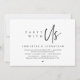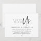 Tarjeta de invitación de fuga de novios con tema de escritura minimalista moderna (fiesta con nosotros). Es perfecta para la recepción de fuga de novios / fiesta de celebración después de la boda. Agrega tus detalles en fuente / letra negra a juego.