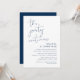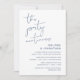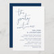 Esta es la tarjeta de invitación de la fiesta de fuga de novios, con diseño de letra Navy Blue minimalista / minimalismo (La fiesta continúa)