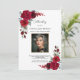 Invitación de funeral de rosas rojas borgoña elegantes con foto y texto editables. Personalice fácilmente a través de Objetos de plantilla en el editor de Zazzle.