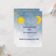 La invitación perfecta para los que reciben a los hermanos gemelos. El sol y la luna que representan a los dos gemelos separados. Un fondo azul acuarela y un texto azul oscuro complementan el sol dorado, la luna y los arranques colgantes que lo acompañan. Las estrellas colgantes también aparecen en la parte posterior,