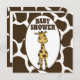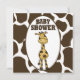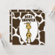 Invitación de Baby Shower de jirafa con fondo de patrón de jirafa y una jirafa linda . Genial que la madre espere un niño o una niña. Personalizar con los datos de su fiesta.