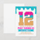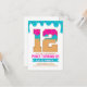 Celebra cumplir doce años de la manera más dulce con esta divertida y colorida invitación de goteo de helado de cumpleaños 12. Con un diseño juguetón de helado derretido, esta invitación es perfecta para niños que aman temas de fiesta brillantes y de moda.