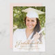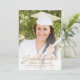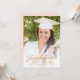 Moderna invitación de graduación con una foto vertical personalizado. La palabra "Graduado" aparece en la escritura dorada, con el nombre del graduado, la escuela y el año de graduación debajo en letra sans serif. Reemplace fácilmente la imagen de muestra con la foto de su propio graduado. Una pantalla de degradado blanco ayuda a asegurar que aparece el texto. Añade detalles sobre los logros de tu graduado y planes futuros al revés en texto dorado con un fondo rosa rubor. Ideal para graduación de secundaria o universitaria.