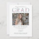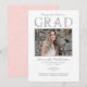 Una bella invitación femenina de graduación resaltada con la palabra "GRAD" escrita en letras florales de color agua del alfabeto. Inserte la foto deseada en lugar de la foto de ejemplo mostrada en la plantilla de diseño fácil de usar. Personalice el texto con sus especificaciones.