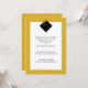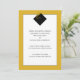 Anuncios clásicos de graduación para el jardín con elegante gorra negra y talla dorada sobre fondo dorado.