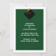 Anuncios clásicos de graduación para el jardín con elegante gorra negra y talla dorada sobre fondo verde.
