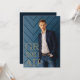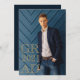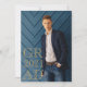 Este diseño moderno presenta el texto dorado superpuesto "Grad" con el año entre las letras sobre una fotografía. Edite la foto simplemente agregando la suya. La parte posterior de la invitación se puede personalizar con sus datos personalizados para su celebración de graduación editando los cuadros de texto.