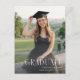 Celebre a su graduado con esta moderna y elegante tarjeta postal de invitación a la fiesta de graduación que presenta un lazo negro atrevido y una tipografía de letra caligráfica refinada. El diseño minimalista chic combina perfectamente con la foto de su graduado, creando un recuerdo personal y elegante para cualquier evento de clase de universidad. Perfecta para una fiesta de graduación inspirada en una cinta coquette de moda, combina un diseño atemporal con detalles significativos. Personalice fácilmente su tarjeta postal de invitación de graduación con su propio texto e imagen. Personalice la suya hoy.