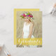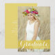 Invite a familiares y amigos a su evento con esta invitación personalizable para la fiesta de graduación de la promoción de 2023. Cuenta con la palabra "graduado" en caligrafía moderna con un acento de salpicadura de acuarela amarilla. Personalice esta invitación de graduación con foto agregando sus propios detalles. Esta invitación de graduación de acuarela amarilla es perfecta para graduaciones de secundaria y universidad.