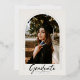 Una tarjeta de 2 en 1 para anunciar su graduación e invitar a celebrar la graduación de su hijo. Presenta un arco geométrico que enmarca la imagen combinada con una tipografía de estilo moderno y cepillado sobre un fondo crema con toques de Relieve metalizado plateado real. En la parte de atrás rellena toda la información para tu celebración. Si quieres usar sólo el frente para anunciar al graduado. Vaya a "Editar este diseño" y elimine toda la información de la parte posterior. ¿Necesita ayuda o piezas adicionales? Por favor, contáctame usando el botón de contacto de abajo.