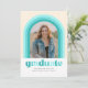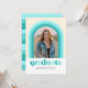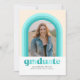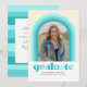Esta divertida invitación de graduación presenta un arco con diferentes tonos de verde azulado alrededor de una sola foto. La parte posterior de la tarjeta tiene un patrón de franja de coordinación así como espacio para un mensaje personal o detalles de invitación para una celebración de graduación.