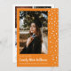 ¡Celebra tu graduación con esta invitación de graduación de colores de la escuela de confeti blanco y Naranja con un diseño moderno y sencillo! El diseño sencillo y moderno con tipografía limpia es sofisticado y elegante con textos de escritura limpios. ¡Excelente para una escuela secundaria, 8º grado o graduación universitaria!