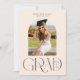 Esta moderna invitación de graduación de una foto muestra una foto vertical en forma de arco con la palabra "GRAD" en una elegante letra moderna (no editable) y el año de clase colocado dentro de la D (el año es editable). Este moderno diseño de tarjetas planas también incluye plantillas editables para el nombre del graduado y la escuela en la parte delantera y cualquier detalle adicional que desee compartir en la parte posterior. Por favor vea mi tienda Lisa McLean Design Zazzle para ver otros colores y diseños disponibles. Gracias.