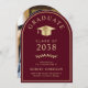 Elegante invitación de graduación de la universidad roja burdeos en forma de arco que presenta una gorra de graduación de oro y una simple tipografía de oro moderna para el nombre del graduado, año de clase, universidad o universidad, grado y especialidad o honores. La foto del graduado llena la parte posterior de la tarjeta.