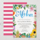 Un hermoso diseño de luau en acuarela; ¡perfecto para cualquier fiesta tropical! Las franjas del fondo en la parte posterior de la tarjeta se pueden personalizar a cualquier color que desee.