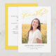 Esta moderna invitación de graduación presenta la palabra finalmente escrita en amarillo soleado sobre una sola foto. La parte posterior de la tarjeta puede utilizarse para texto adicional o como invitación.