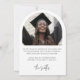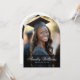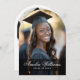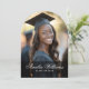 Tarjeta de invitación fotográfica en forma de arco que muestra tu foto y el nombre del graduado en una tipografía caligráfica elegante con el año siguiente. Añade una foto adicional y un mensaje personalizado en la parte posterior.