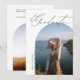 Nuestra moderna invitación minimalista de graduación cuenta con un marco fotográfico en arco y una tipografía moderna. Personalice esta invitación minimalista a la graduación añadiendo su foto, nombre, escuela y otros detalles. Fotos de prostooleh / Freepik.