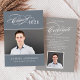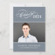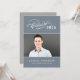 Celebre a su graduado con esta elegante invitación de fiesta de graduación que presenta un guion de caligrafía "Promoción de" florecido con el año en un fondo de pizarra junto a un retrato de último año enmarcado por acentos de línea delgada. La parte posterior gris presenta un titular de guion "Celebre" hermoso con un segundo lugar para foto y todos los detalles de su fiesta. Texto totalmente personalizable en ambos lados.