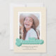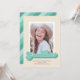 Esta divertida invitación de graduación de fotos muestra la palabra graduada escrita en un guión de estilo retro en tonos verdes. La parte posterior de la tarjeta tiene un patrón de rayas diagonales de coordinación de color.