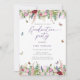 Romántica, moderna y elegante, esta invitación de fiesta de graduación presenta un jardín femenino, bonito y delicado de flores rosas y púrpuras de acuarela con mariposas, abejas y mariquitas en la parte delantera y una foto que puedes personalizar en la parte trasera.